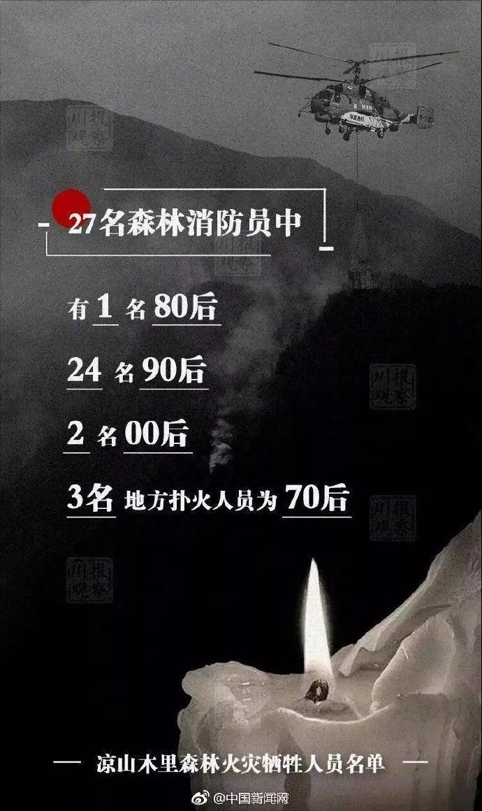 3月30日17时许,四川省凉山州木里县雅砻江镇立尔村发生森林火灾。31日,在扑火行动中,受风力风向突变影响,突发林火爆燃,目前已造成27名森林消防队员和3名地方干部群众牺牲。