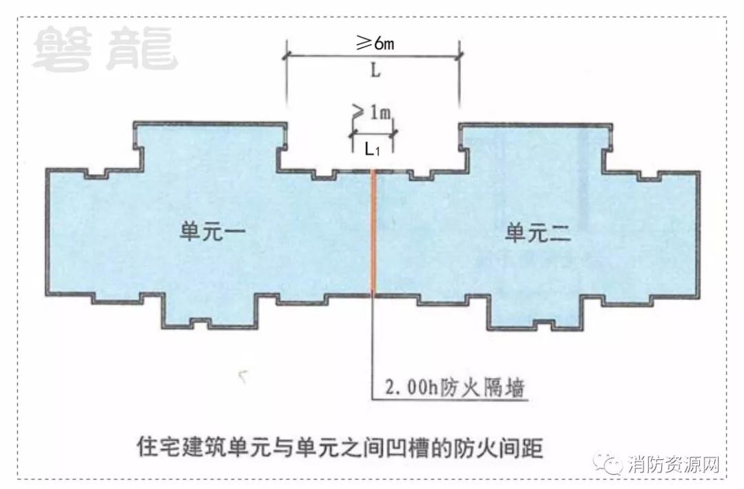 1、示例2的住宅,两个单元之间L≥6m,L1≥1m。