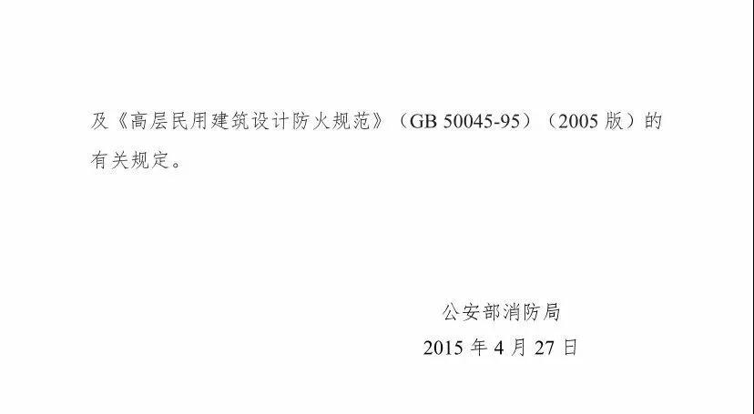 “公消[2015]98号”文件发布于2015年4月27日,明确了《建筑设计防火规范》(GB 50016-2014)以及后续发布的其他新版消防技术规范的执行要求,原文摘录如下: