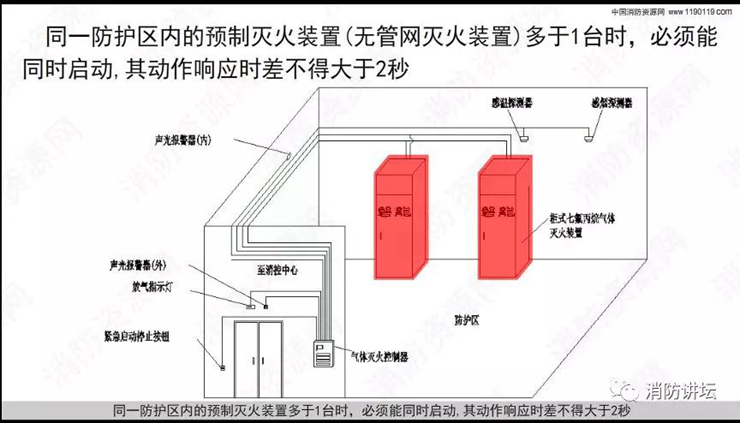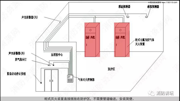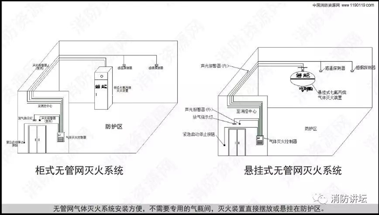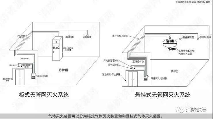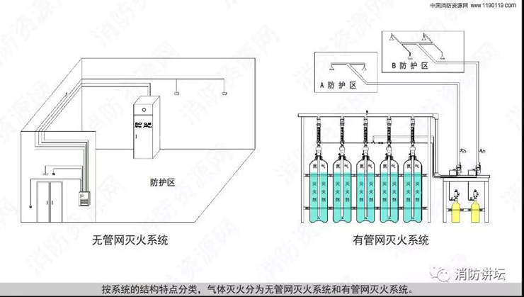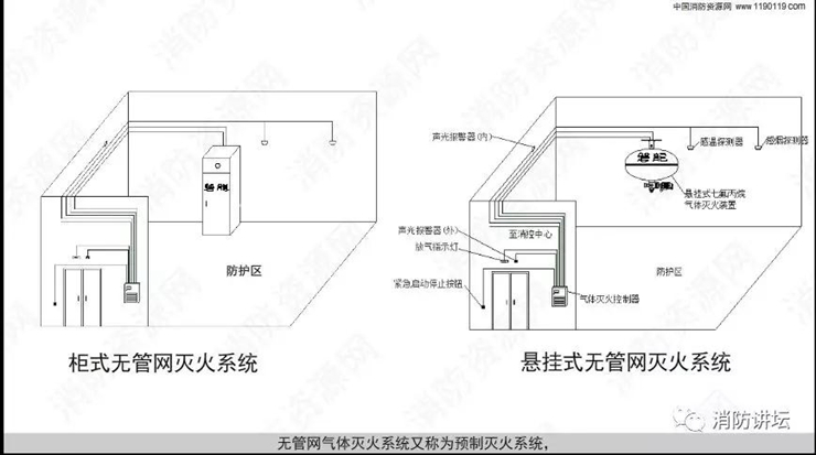 气体灭火分为有管网灭火系统和无管网灭火系统! 无管网灭火系统又称为预制灭火系统,分为悬挂式、柜式灭火系统,概念纠结,这里一次性讲清楚了