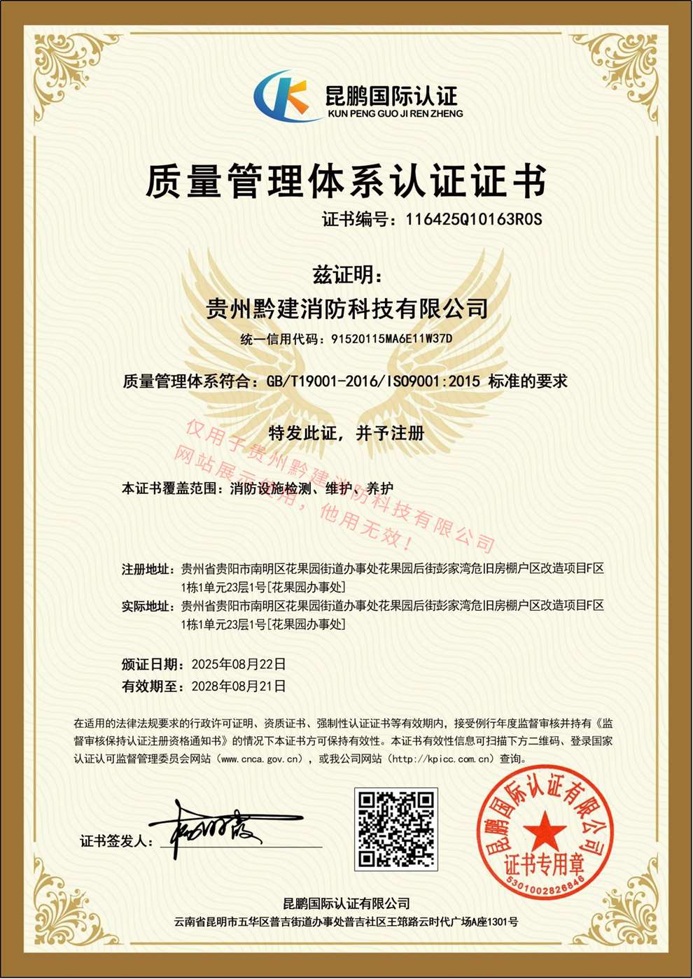 质量管理体系认证证书